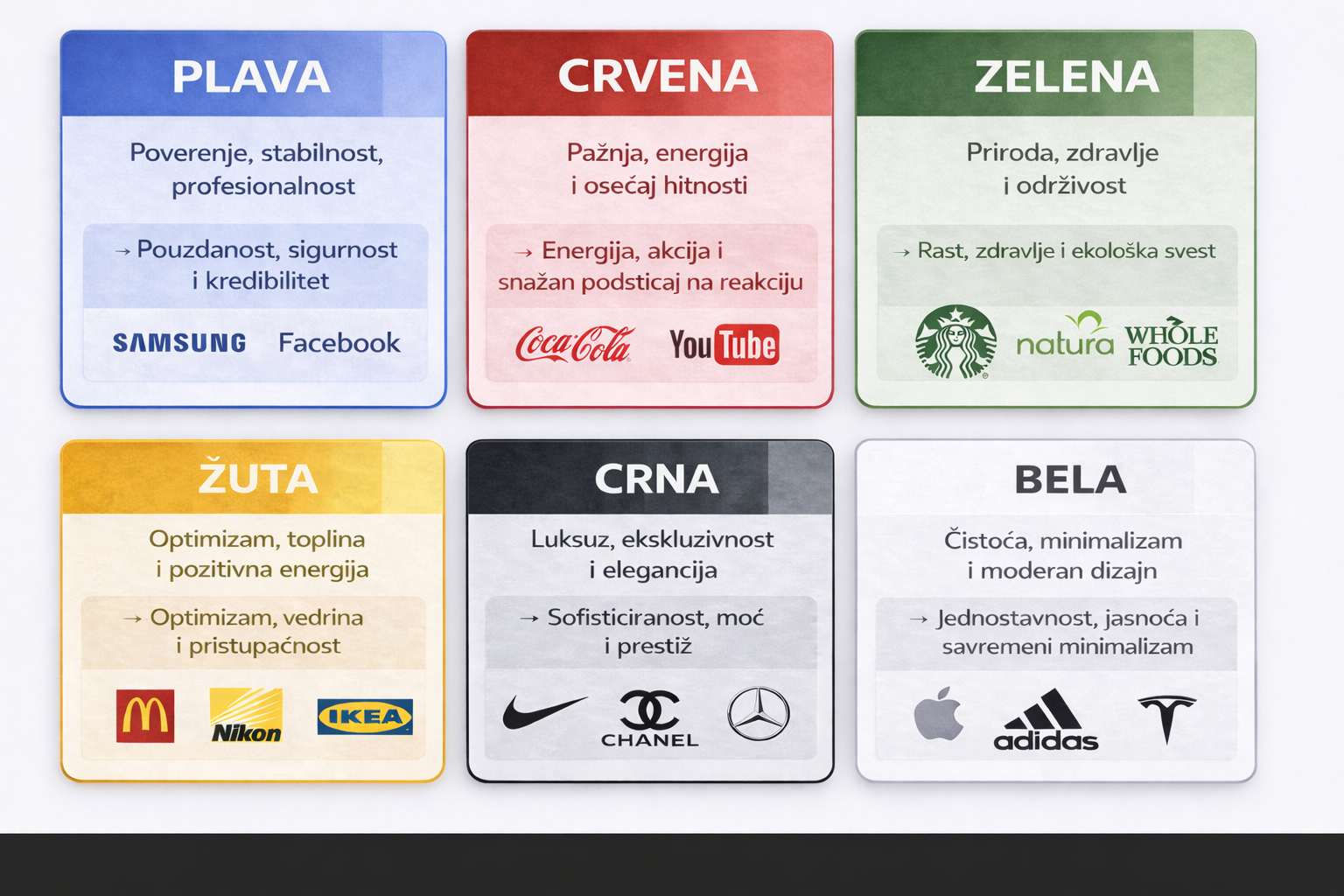 Evo kratkog pregleda najčešćih boja i njihovog značenja u marketinškom kontekstu: